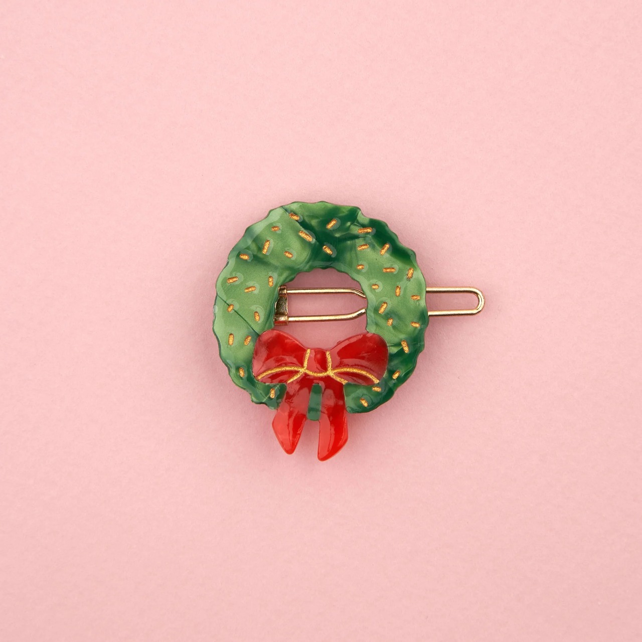 赤いリボンがついた、クリスマスを象徴するリースモチーフのポールピンです。