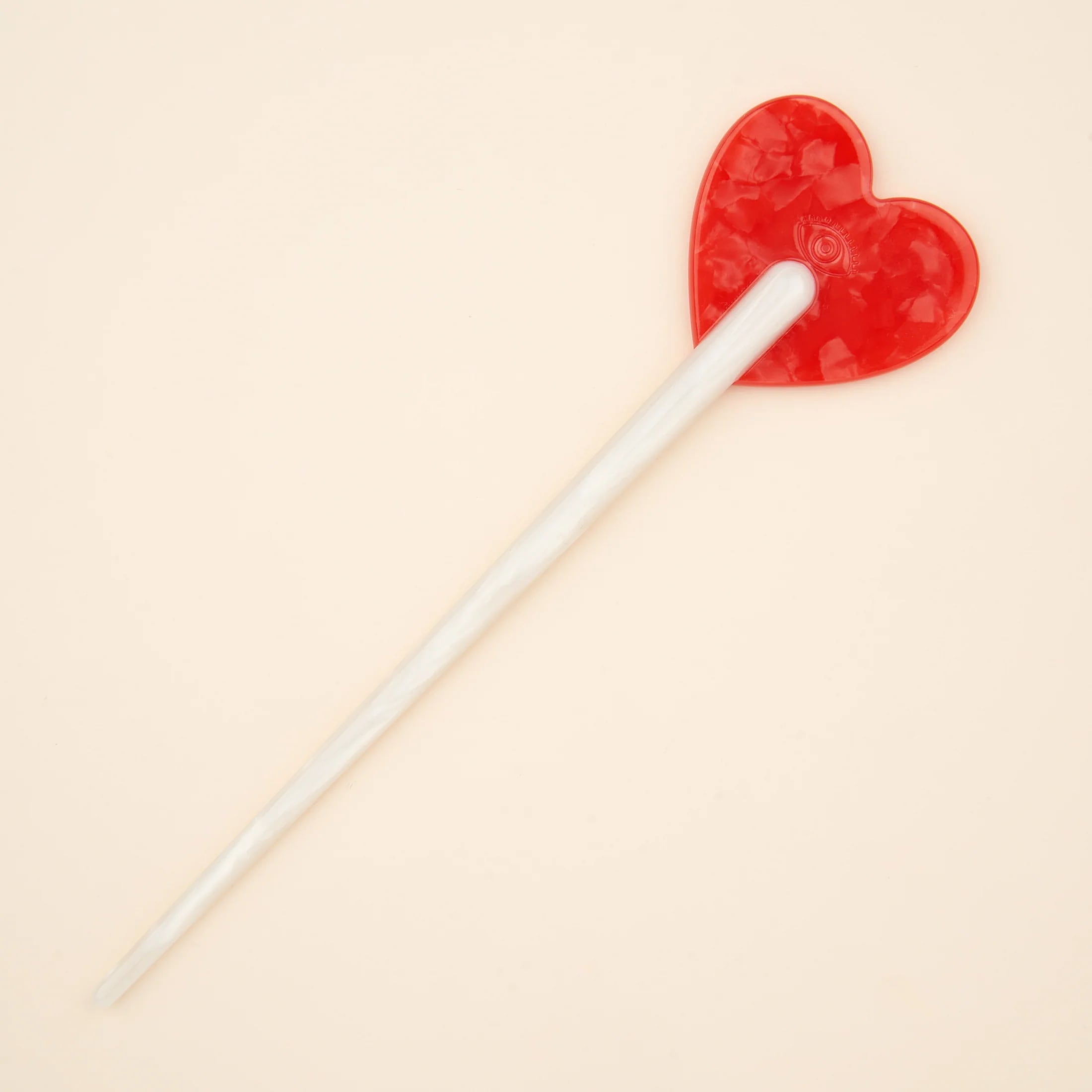 ハート型ロリポップ(棒付きキャンディー)デザインのヘアスティック。