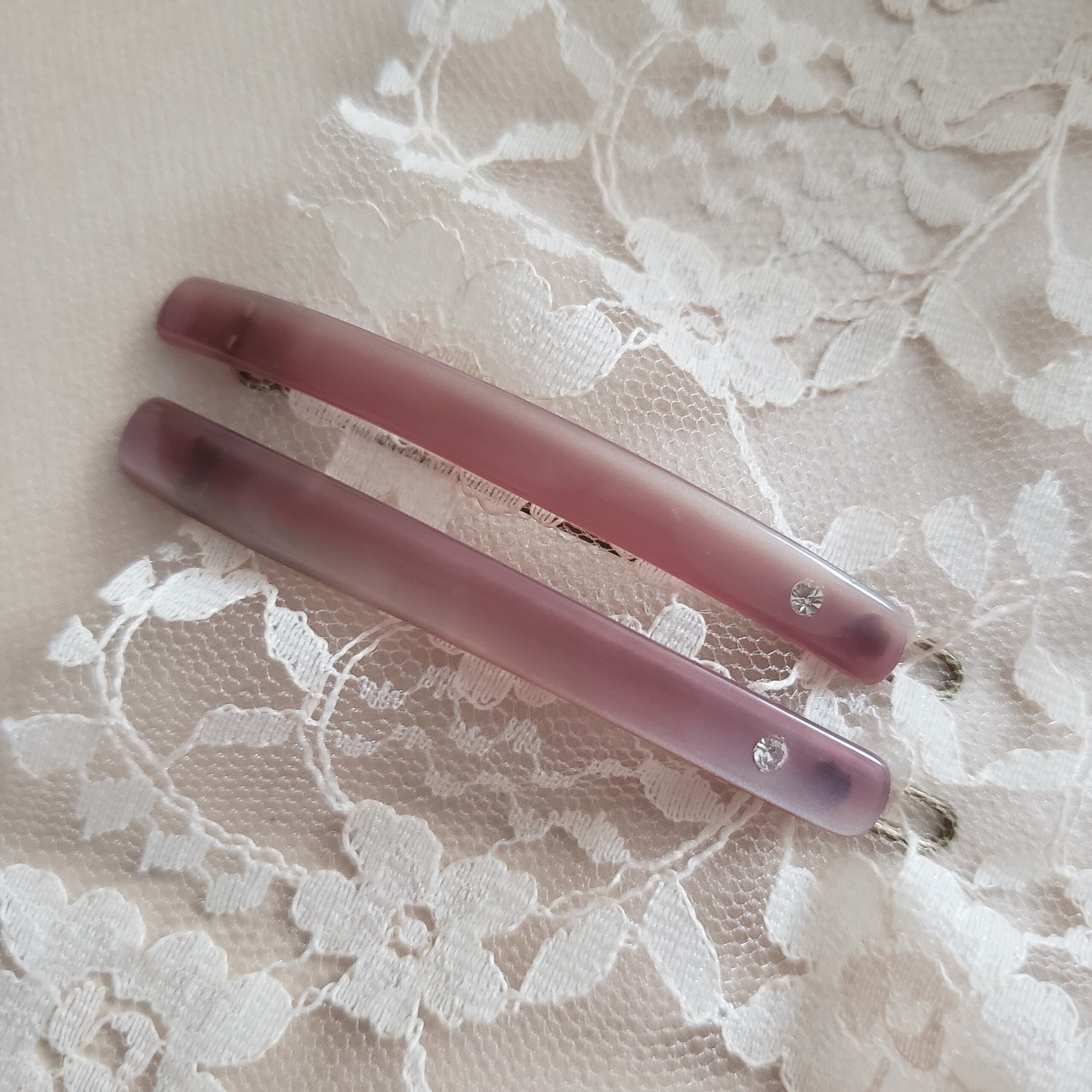 【2本セット】Vintage hair barrette clip -clystal / インポートフランス ヴィンテージ 細め ヘアバレッタ ヘアピン ラインストーン