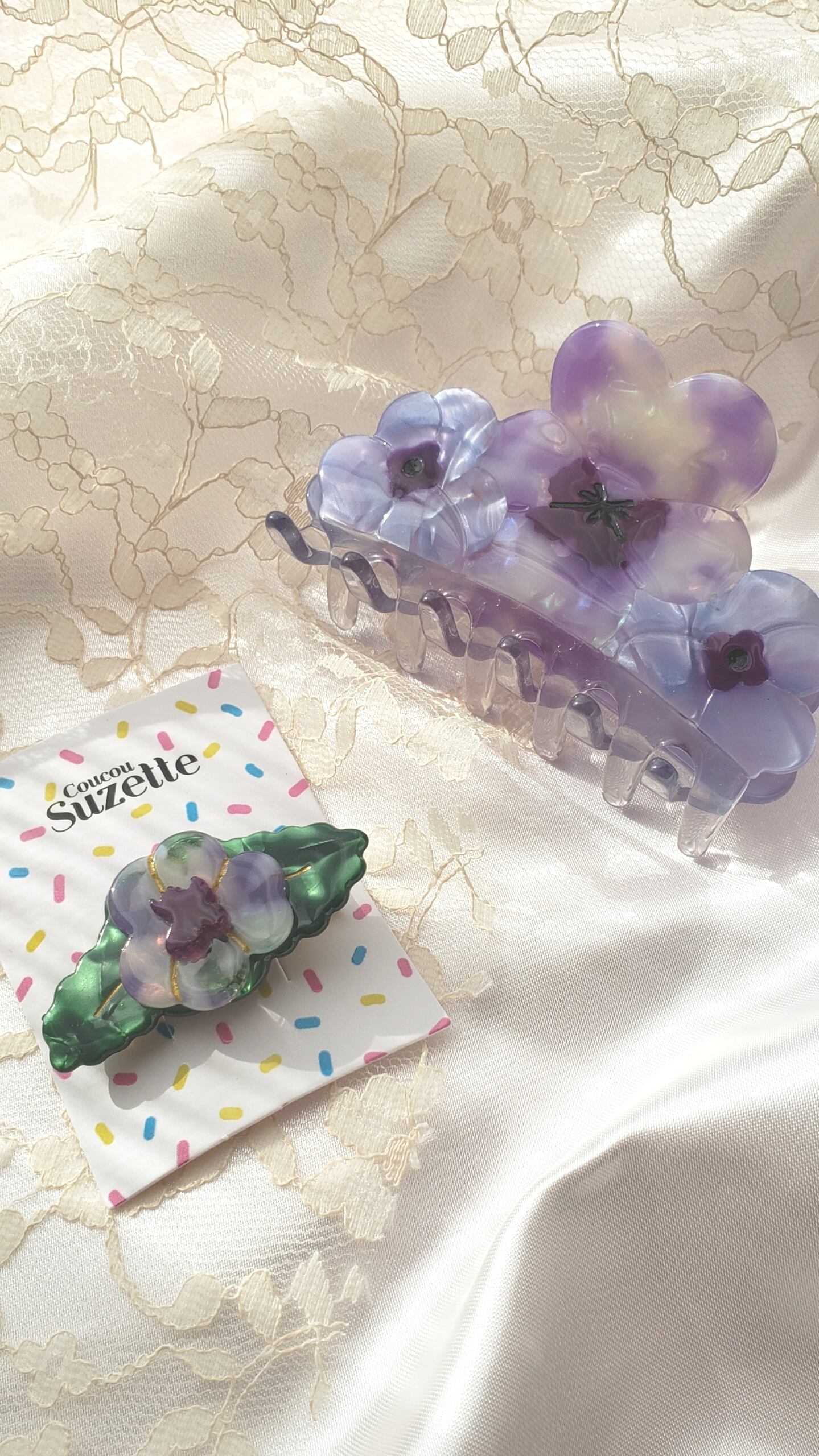 *RESTOCK*【Coucou Suzette】Barrette Pensée Mauve / Purple Pansy Hair Clip インポート フランス ククシュゼット パンジー フラワー パープル ミニヘアクリップ