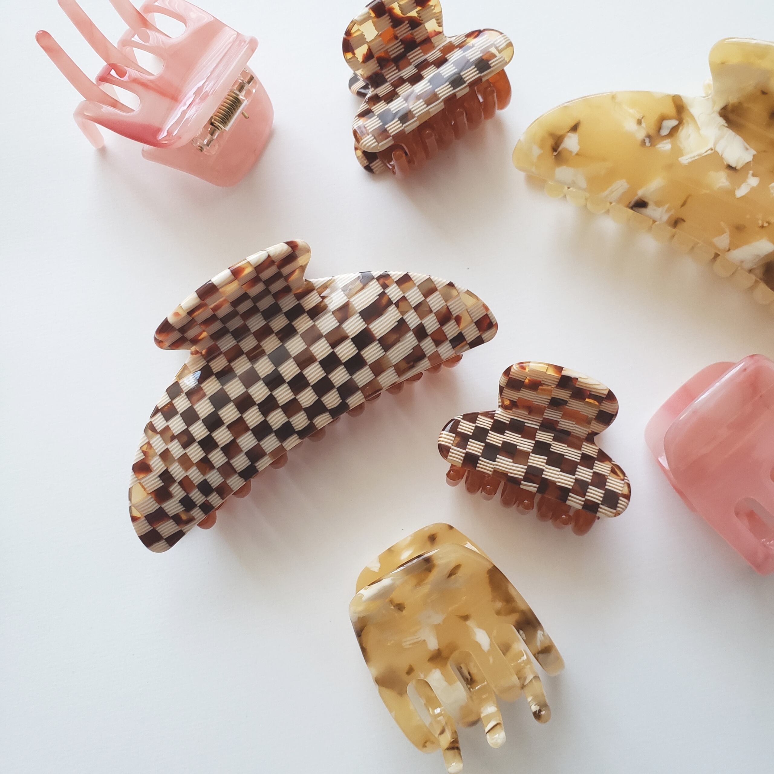 【MACHETE】Twin Heirloom Claw in Tortoise Checker インポート アメリカ マシェーテ ブラウン チェック柄 アセテート ミニヘアクリップ