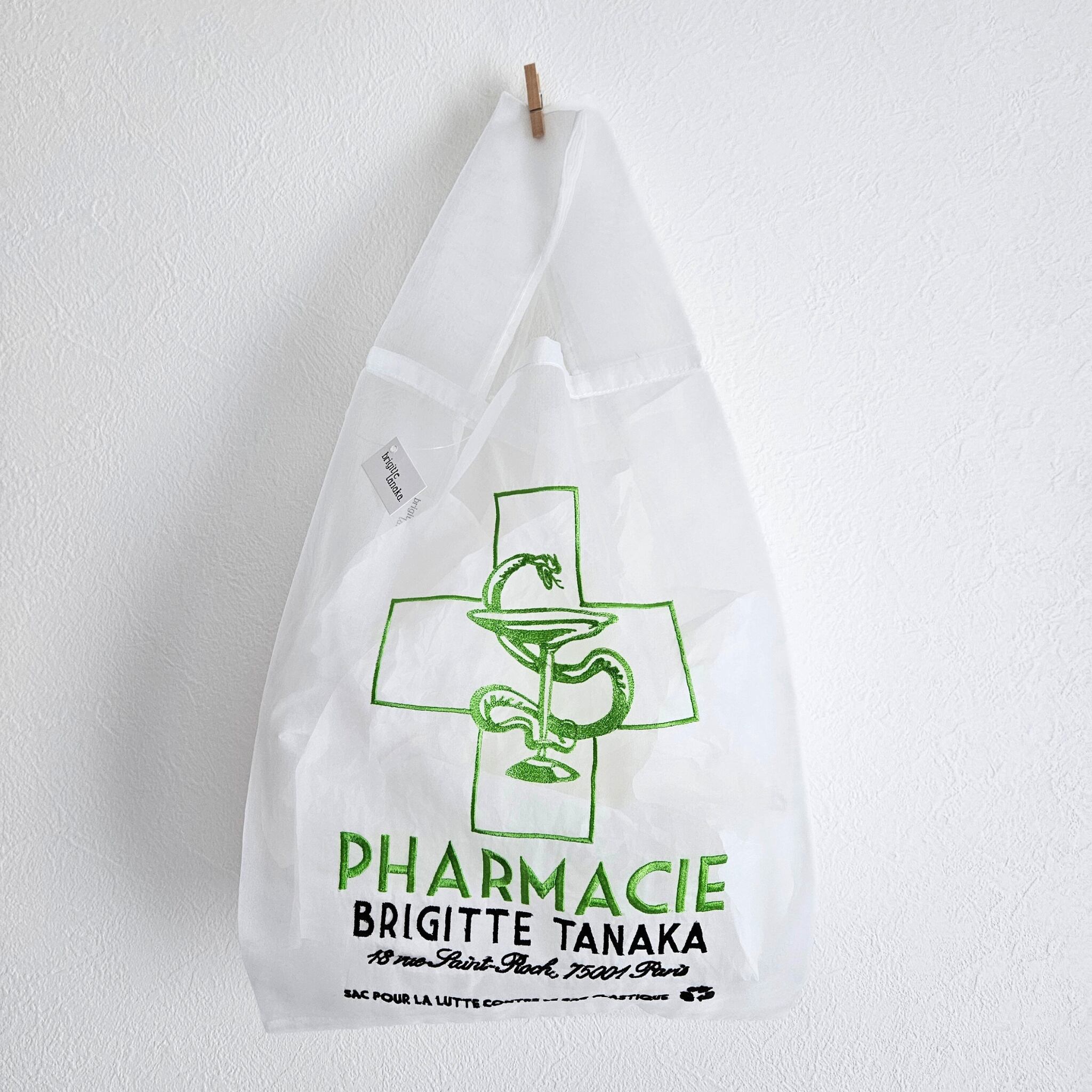 *RESTOCK**送料無料*【BRIGITTE TANAKA】SAC "PHARMACIE" DÉTOURNÉ EN ORGANZA ET BRODERIES / インポート ブリジットタナカ フランス パリ オーガンジーバッグ エコバッグ 薬屋さん 薬局 グリーン