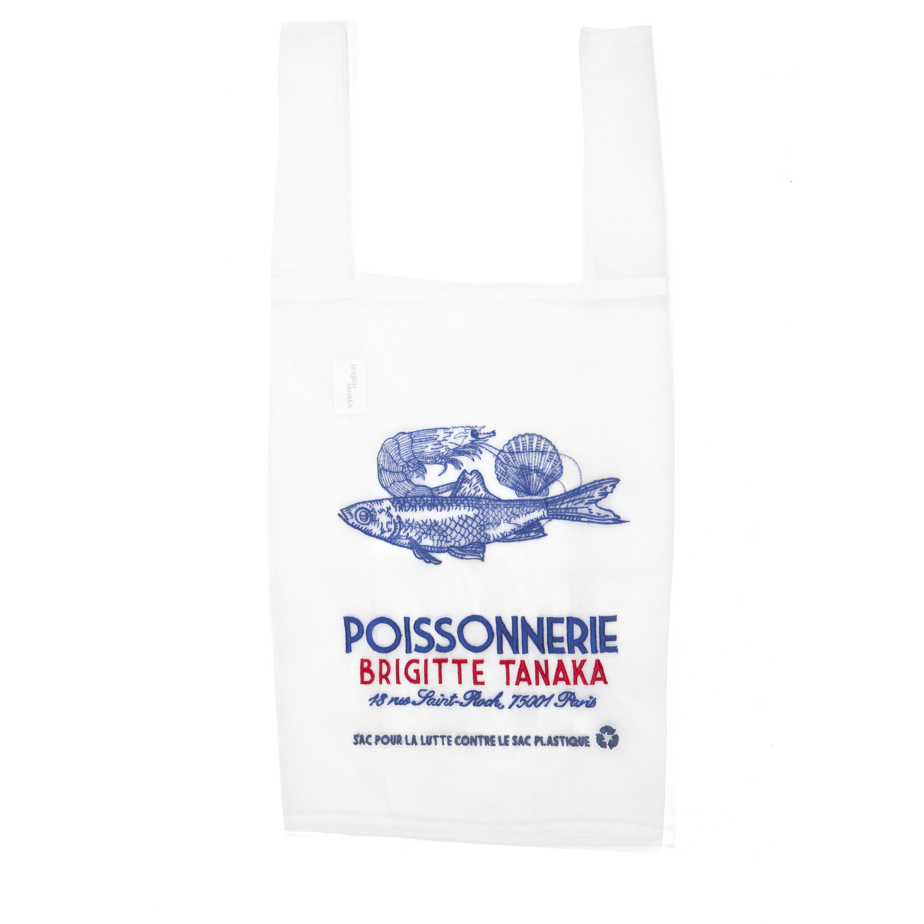 *送料無料**RESTOCK* 【BRIGITTE TANAKA】SAC "POISSONNERIE" DÉTOURNÉ EN ORGANZA ET BRODERIES / インポート ブリジットタナカ フランス パリ オーガンジーバッグ エコバッグ 魚屋さん 魚 シーフード トリコロール